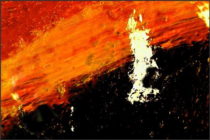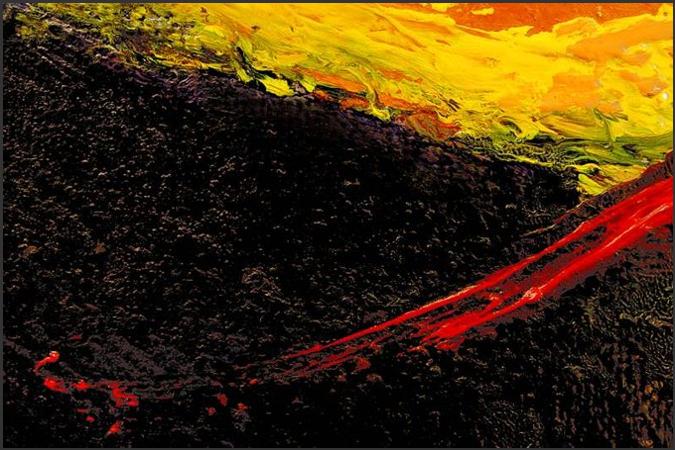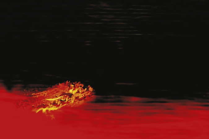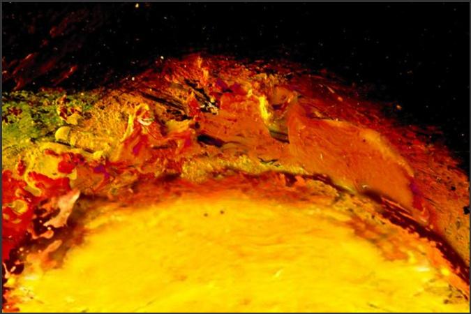 Phase 2: Es brodelt. Eruptionen der Licht-substanz. Feurige Kraft schleudert Wärme und Licht. Durchdringt die obrige Schwärze.